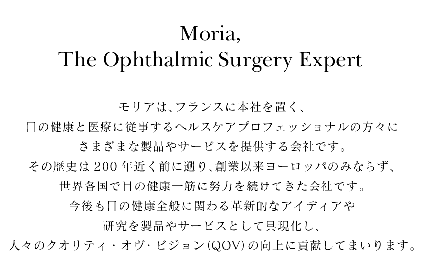 モリアではその200年を超える眼科手術分野での経験に基づき、白内障をはじめとするあらゆる眼科手術に